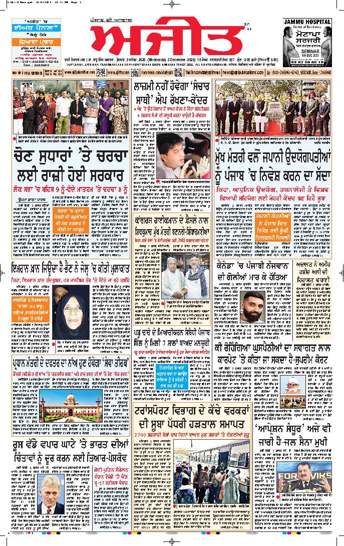 ਅਜੀਤ' ਖ਼ਬਰਾਂ, 02 ਦਸੰਬਰ 2025