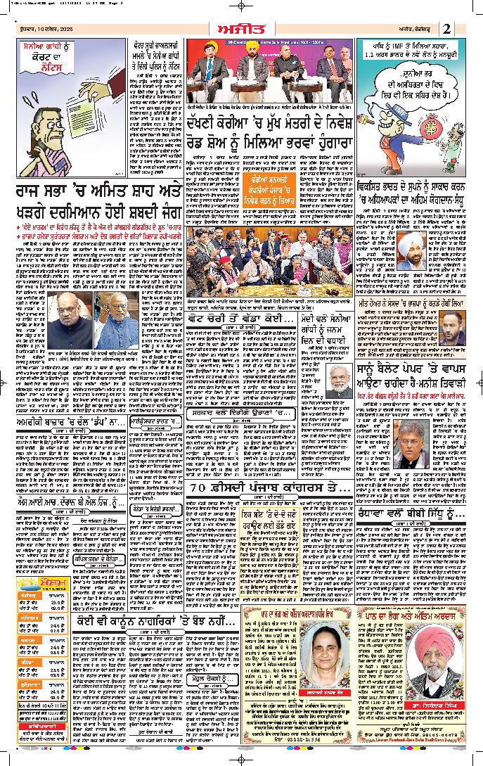 ਨਵੀਂ ਦਿੱਲੀ, 10 ਦਸੰਬਰ- ਬੀਤੇ ਦਿਨ ਸੰਸਦ ਦੇ ਦੋਵਾਂ ਸਦਨਾਂ ਵਿਚ ਵੰਦੇ ਮਾਤਰਮ 'ਤੇ ਚਰਚਾ ਹੋਈ ਹੈ। ਅੱਜ ਲੋਕ ਸਭਾ ਵਿਚ ਚੋਣ ਸੁਧਾਰਾਂ 'ਤੇ ਚਰਚਾ ਹੋਵੇਗੀ, ਜਿਸ ਵਿਚ ਗ੍ਰਹਿ ਮੰਤਰੀ ਅਮਿਤ ਸ਼ਾਹ...