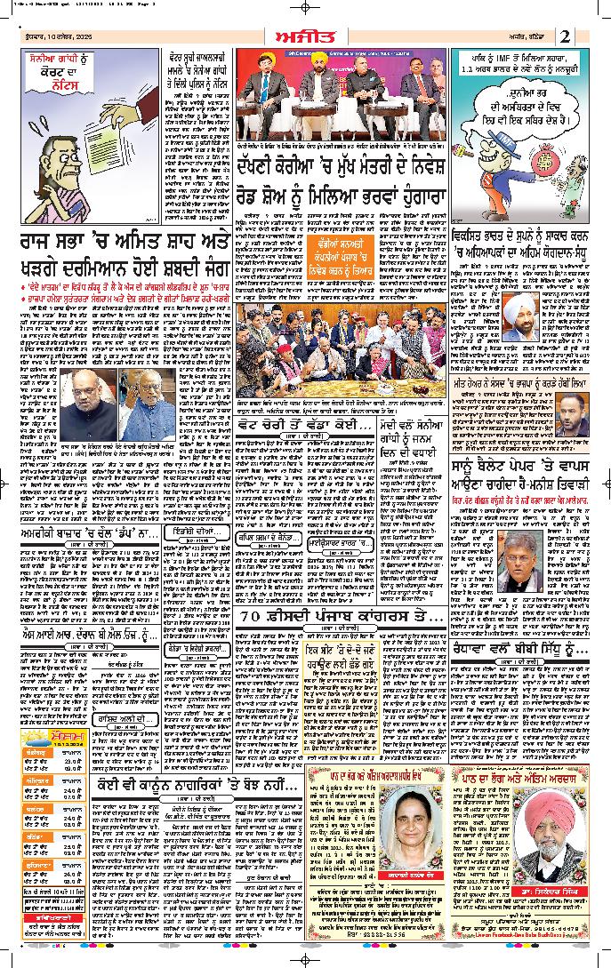 ਨਵੀਂ ਦਿੱਲੀ, 10 ਦਸੰਬਰ- ਬੀਤੇ ਦਿਨ ਸੰਸਦ ਦੇ ਦੋਵਾਂ ਸਦਨਾਂ ਵਿਚ ਵੰਦੇ ਮਾਤਰਮ 'ਤੇ ਚਰਚਾ ਹੋਈ ਹੈ। ਅੱਜ ਲੋਕ ਸਭਾ ਵਿਚ ਚੋਣ ਸੁਧਾਰਾਂ 'ਤੇ ਚਰਚਾ ਹੋਵੇਗੀ, ਜਿਸ ਵਿਚ ਗ੍ਰਹਿ ਮੰਤਰੀ ਅਮਿਤ ਸ਼ਾਹ...