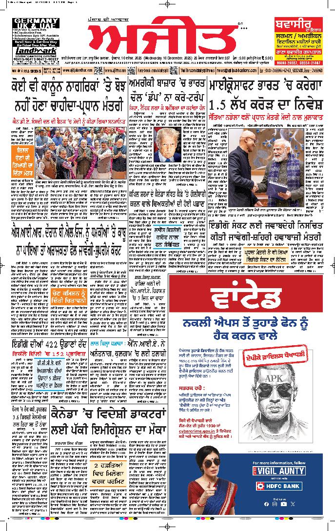 ਅਜੀਤ' ਖ਼ਬਰਾਂ, 09 ਦਸੰਬਰ 2025