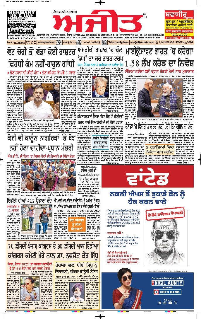 ਅਜੀਤ' ਖ਼ਬਰਾਂ, 09 ਦਸੰਬਰ 2025