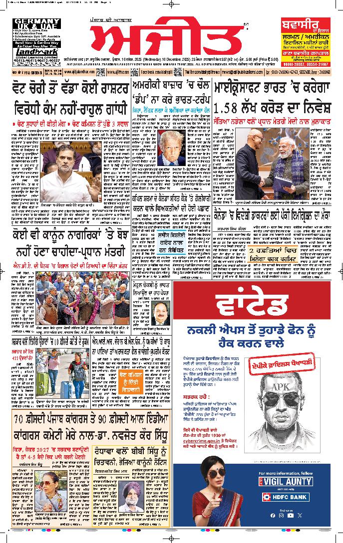 ਅਜੀਤ' ਖ਼ਬਰਾਂ, 09 ਦਸੰਬਰ 2025