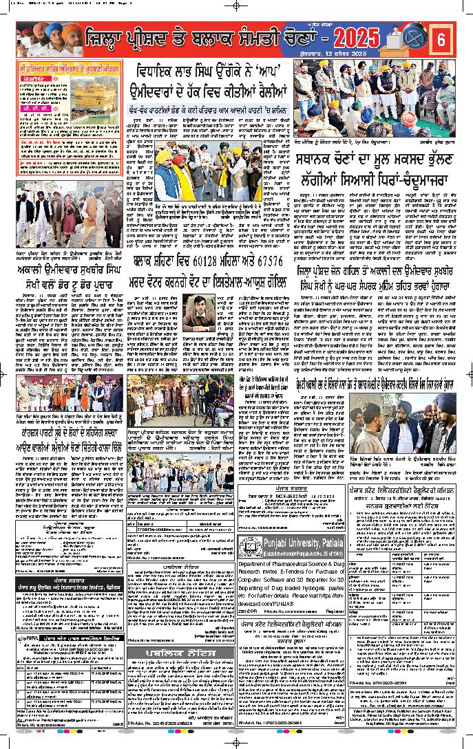 ਹਰਸਾ ਛੀਨਾ/ਅਜਨਾਲਾ (ਅੰਮ੍ਰਿਤਸਰ), 12 ਦਸੰਬਰ (ਕੜਿਆਲ/ਅਜਨਾਲਾ)- ਸੂਬਾ ਚੋਣ ਕਮਿਸ਼ਨ ਵਲੋਂ ਬਲਾਕ ਸੰਮਤੀ ਅਤੇ ਜ਼ਿਲ੍ਹਾ ਪ੍ਰੀਸ਼ਦ ਚੋਣਾਂ ਲਈ ਜਾਰੀ ਸਮਾਂ ਸਾਰਨੀ ਅਨੁਸਾਰ ਚੋਣ ਪ੍ਰਚਾਰ ਲਈ...