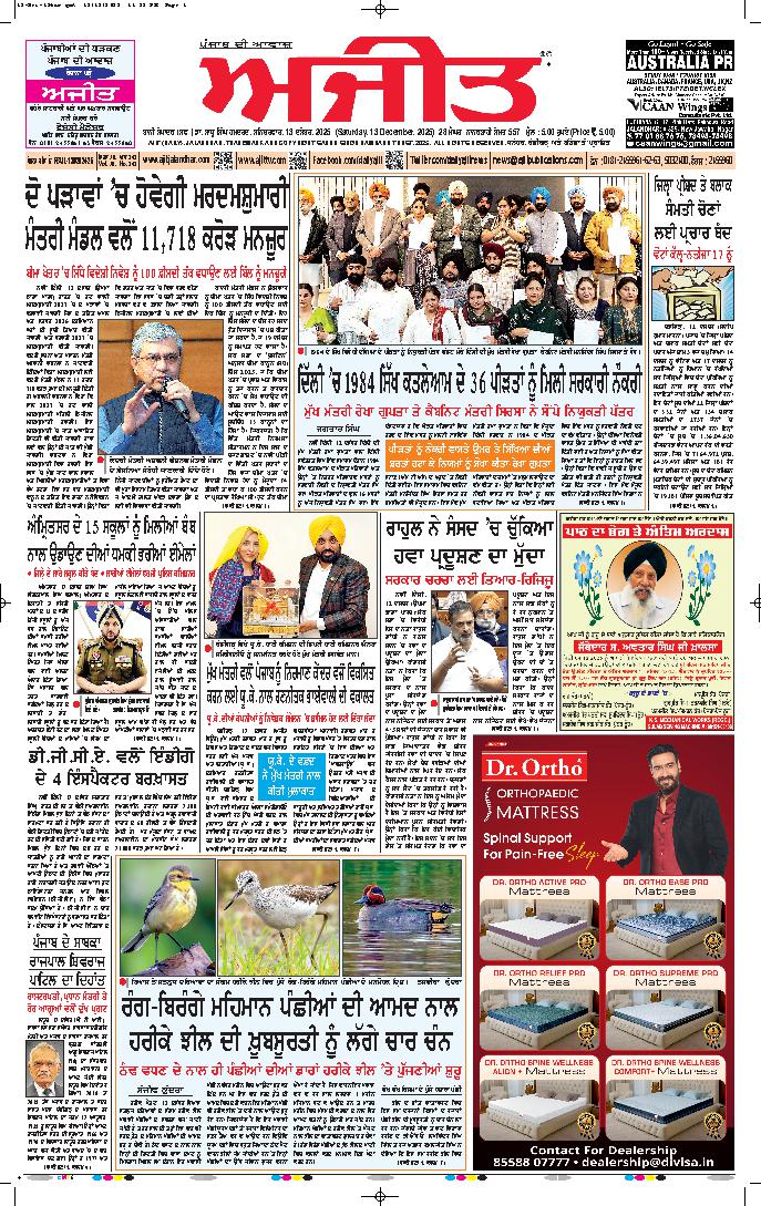 ਅਜੀਤ' ਖ਼ਬਰਾਂ, 13 ਦਸੰਬਰ 2025