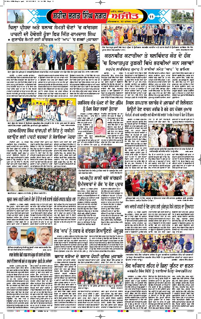 ਜਲੰਧਰ, 14 ਦਸੰਬਰ- ਚੋਣਾਂ ਦੇ ਸੁਚਾਰੂ, ਆਜ਼ਾਦ, ਨਿਰਪੱਖ ਅਤੇ ਪਾਰਦਰਸ਼ੀ ਸੰਚਾਲਨ ਤੋਂ ਬਾਅਦ, ਜ਼ਿਲ੍ਹਾ ਪ੍ਰਸ਼ਾਸਨ ਜਲੰਧਰ ਵਲੋਂ ਕੀਤੇ ਗਏ ਵਿਸਤ੍ਰਿਤ ਪ੍ਰਬੰਧਾਂ ਵਿਚਕਾਰ ਹੋਈਆਂ ਜ਼ਿਲ੍ਹਾ ਪ੍ਰੀਸ਼ਦ ਅਤੇ ਪੰਚਾਇਤ ...