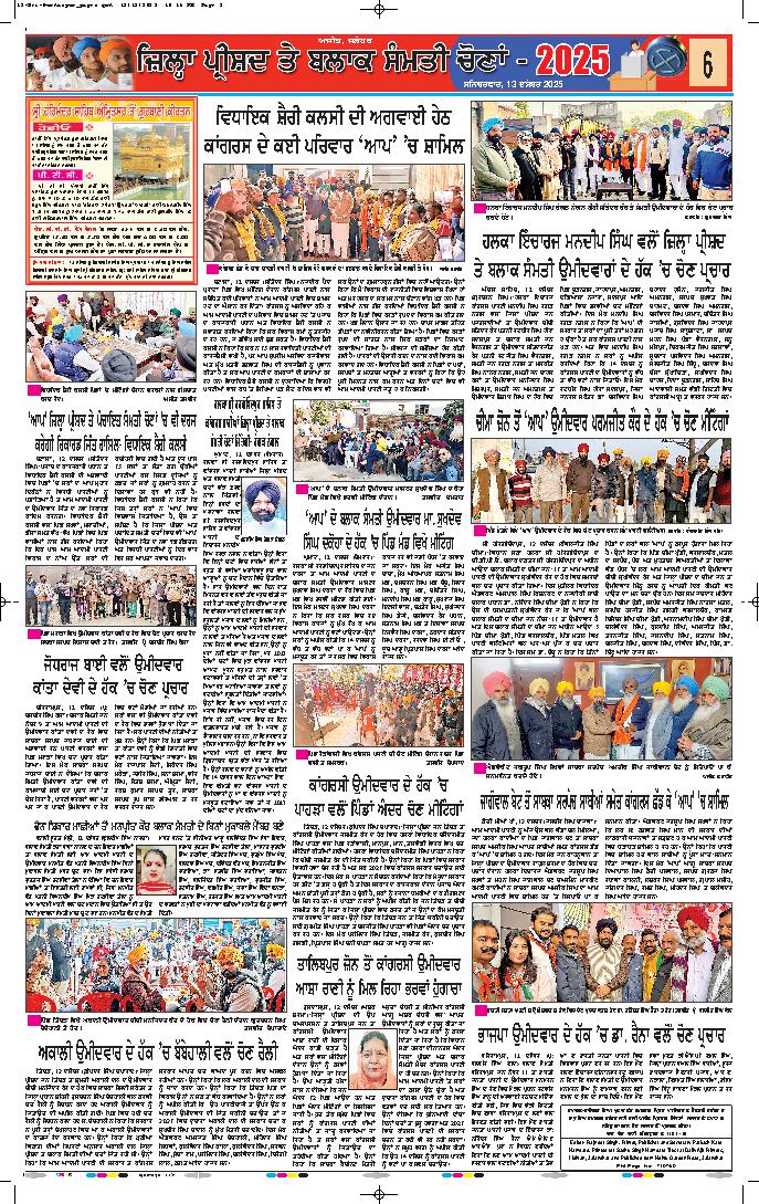 ਜਲੰਧਰ, 14 ਦਸੰਬਰ- ਚੋਣਾਂ ਦੇ ਸੁਚਾਰੂ, ਆਜ਼ਾਦ, ਨਿਰਪੱਖ ਅਤੇ ਪਾਰਦਰਸ਼ੀ ਸੰਚਾਲਨ ਤੋਂ ਬਾਅਦ, ਜ਼ਿਲ੍ਹਾ ਪ੍ਰਸ਼ਾਸਨ ਜਲੰਧਰ ਵਲੋਂ ਕੀਤੇ ਗਏ ਵਿਸਤ੍ਰਿਤ ਪ੍ਰਬੰਧਾਂ ਵਿਚਕਾਰ ਹੋਈਆਂ ਜ਼ਿਲ੍ਹਾ ਪ੍ਰੀਸ਼ਦ ਅਤੇ ਪੰਚਾਇਤ ...