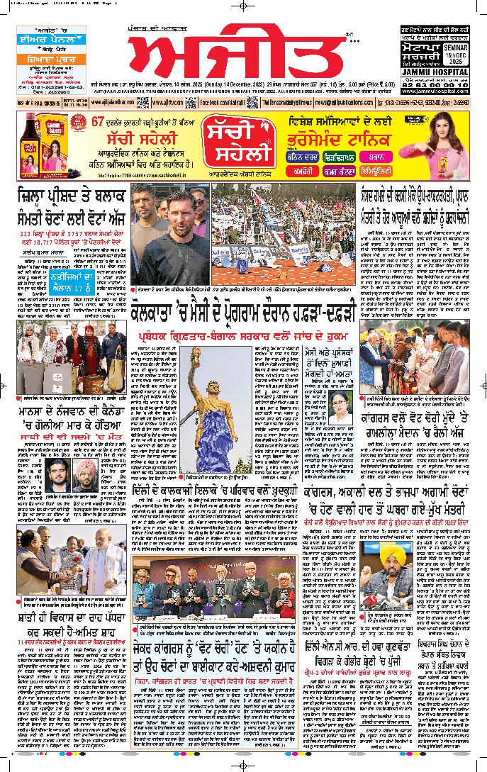 ਅਜੀਤ' ਖ਼ਬਰਾਂ, 13 ਦਸੰਬਰ 2025