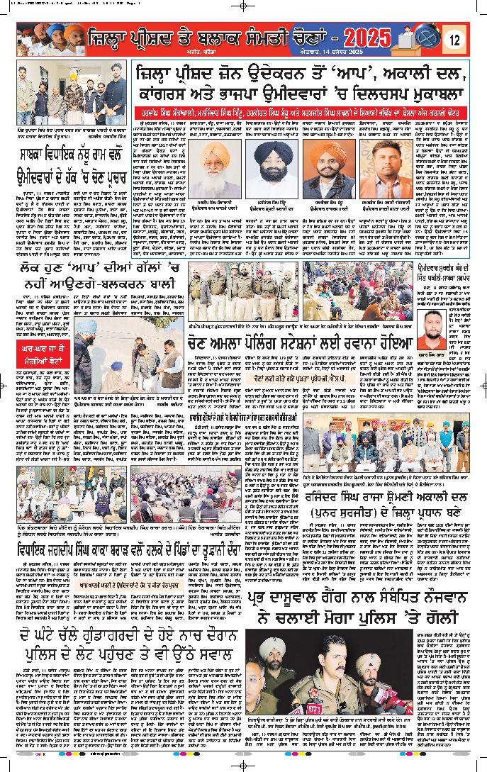 ਗੁਰੂ ਹਰ ਸਹਾਏ ( ਫ਼ਿਰੋਜ਼ਪੁਰ ) ,14 ਦਸੰਬਰ (ਹਰਚਰਨ ਸਿੰਘ ਸੰਧੂ )-ਬਲਾਕ ਸੰਮਤੀ ਤੇ ਜ਼ਿਲ੍ਹਾ ਪ੍ਰੀਸ਼ਦ ਚੋਣਾਂ ਦੌਰਾਨ ਵੋਟਰਾਂ ਨੇ ਉਤਸ਼ਾਹ ਨਾਲ ਵੋਟਾਂ ਪਾਈਆਂ। ਬਲਾਕ ਸੰਮਤੀ ਜ਼ੋਨ ਕੋਹਰ ਸਿੰਘ ਵਾਲਾ ...