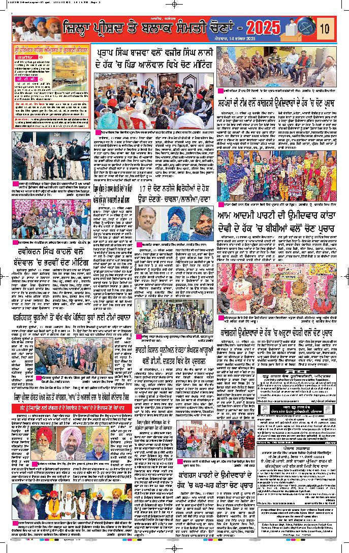 ਹਰਸਾ ਛੀਨਾ,14 ਦਸੰਬਰ (ਕੜਿਆਲ)- ਸਥਾਨਕ ਬਲਾਕ ਅਧੀਨ ਪੈਂਦੇ ਵੱਖ ਵੱਖ ਪਿੰਡਾਂ ਅੰਦਰ ਅੱਜ ਬਲਾਕ ਸੰਮਤੀ ਅਤੇ ਜ਼ਿਲ੍ਹਾ ਪ੍ਰੀਸ਼ਦ ਲਈ ਵੋਟਾਂ ਪੈਣ ਦਾ ਕੰਮ ਅਮਲ ਸ਼ਾਂਤੀ ਨਾਲ ਮੁਕੰਮਲ ਹੋਇਆl ਇਸ ਸਬੰਧੀ ਵੱਖ-ਵੱਖ ਪਿੰਡਾਂ ਤੋਂ ਇਕੱਤਰ ਕੀਤੀ ਜਾਣਕਾਰੀ ਅਨੁਸਾਰ ਅੱਜ ਸਵੇਰ ...