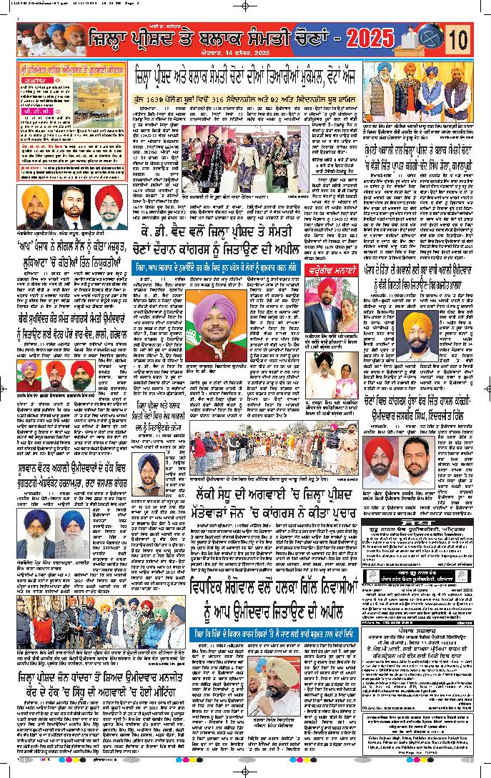 ਕਪੂਰਥਲਾ, 14 ਦਸੰਬਰ (ਅਮਰਜੀਤ ਕੋਮਲ)-ਜ਼ਿਲ੍ਹੇ ਵਿਚ ਜ਼ਿਲ੍ਹਾ ਪ੍ਰੀਸ਼ਦ ਦੇ 10 ਜ਼ੋਨਾਂ ਤੇ 5 ਬਲਾਕ ਸੰਮਤੀਆਂ ਕਪੂਰਥਲਾ, ਸੁਲਤਾਨਪੁਰ ਲੋਧੀ, ਫੱਤੂਢੀਂਗਾ, ਭੁਲੱਥ ਤੇ ਫਗਵਾੜਾ ਦੇ 88 ਜ਼ੋਨਾਂ ਵਿਚ ...