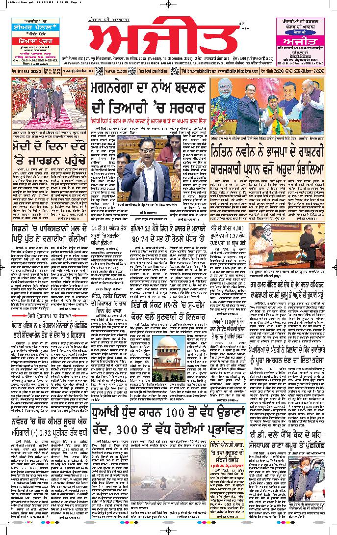 ਅਜੀਤ' ਖ਼ਬਰਾਂ, 15 ਦਸੰਬਰ 2025