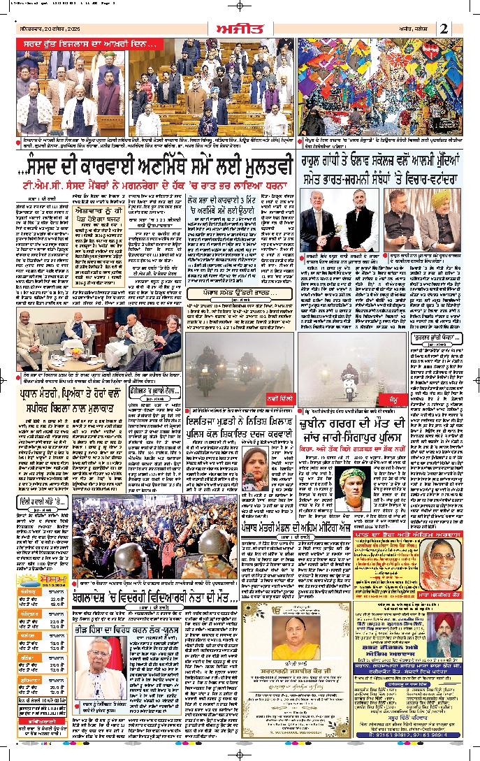 ਨਵੀਂ ਦਿੱਲੀ, 19 ਦਸੰਬਰ (ਏਐਨਆਈ): ਸੰਸਦ ਵਲੋਂ ਰੁਜ਼ਗਾਰ ਅਤੇ ਅਜੀਵਿਕਾ ਮਿਸ਼ਨ (ਗ੍ਰਾਮੀਣ) ਬਿੱਲ ਲਈ ਵਿਕਾਸ ਭਾਰਤ-ਗਾਰੰਟੀ ਨੂੰ ਮਨਜ਼ੂਰੀ ਦੇਣ ਤੋਂ ਬਾਅਦ, ਕਾਂਗਰਸ ਸੰਸਦ ਮੈਂਬਰ ਗੁਰਜੀਤ ਸਿੰਘ ਔਜਲਾ ਨੇ ...