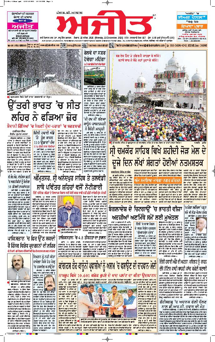 ਅਜੀਤ' ਖ਼ਬਰਾਂ, 21 ਦਸੰਬਰ 2025