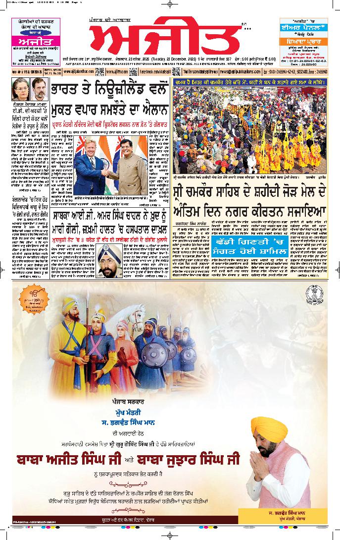 ਅਜੀਤ' ਖ਼ਬਰਾਂ, 22 ਦਸੰਬਰ 2025