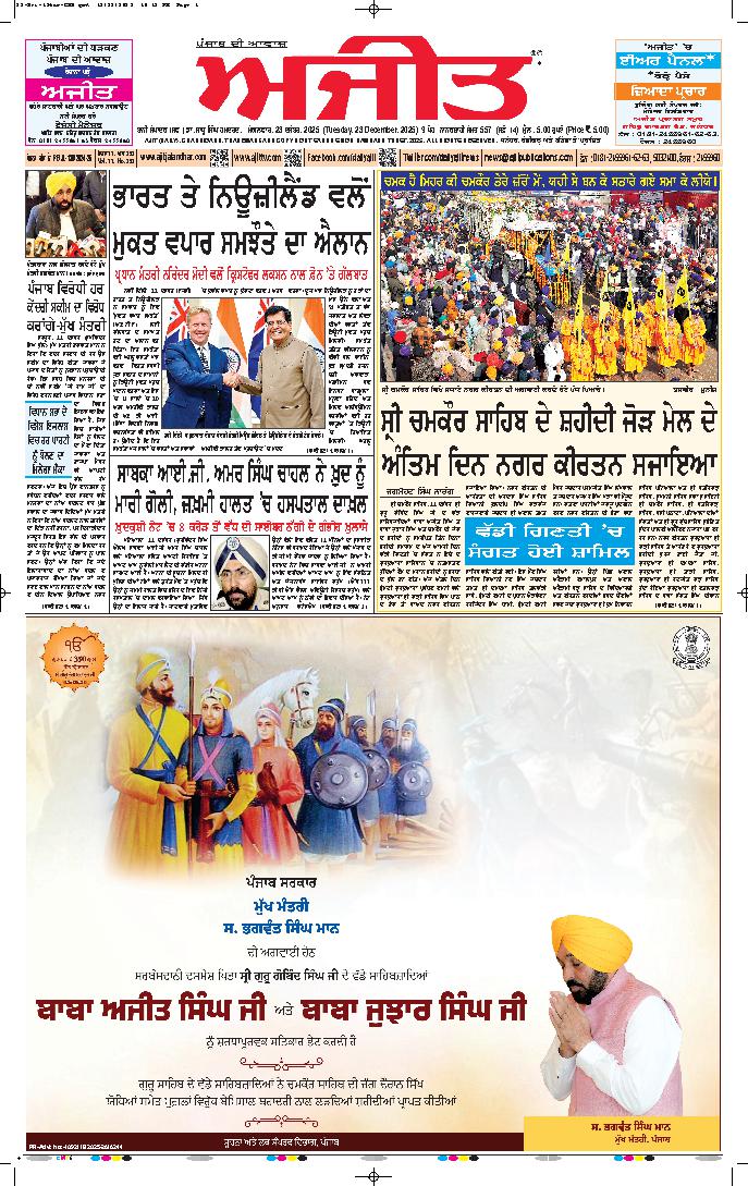 ਅਜੀਤ' ਖ਼ਬਰਾਂ, 22 ਦਸੰਬਰ 2025