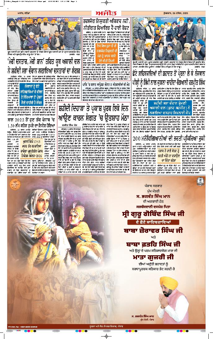 ਫ਼ਤਹਿਗੜ੍ਹ ਸਾਹਿਬ , 25 ਦਸੰਬਰ - ਹਰਿਆਣਾ ਦੇ ਮੁੱਖ ਮੰਤਰੀ ਨਾਇਬ ਸਿੰਘ ਸੈਣੀ ਅਤੇ ਭਾਰਤੀ ਜਨਤਾ ਪਾਰਟੀ (ਭਾਜਪਾ) ਪੰਜਾਬ ਦੇ ਕਾਰਜਕਾਰੀ ਪ੍ਰਧਾਨ ਅਸ਼ਵਨੀ ਸ਼ਰਮਾ ਸਾਹਿਬਜ਼ਾਦਿਆਂ ਦੇ ਸ਼ਹੀਦੀ ਅਸਥਾਨ ਗੁਰਦੁਆਰਾ...