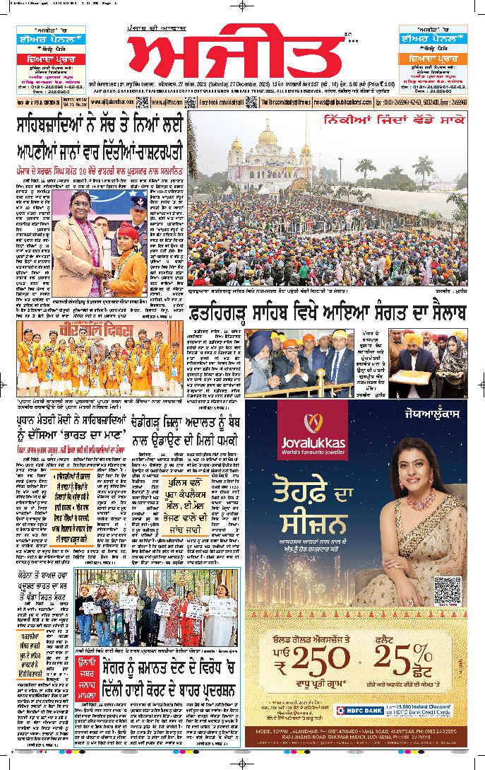 ਅਜੀਤ' ਖ਼ਬਰਾਂ, 26 ਦਸੰਬਰ 2025