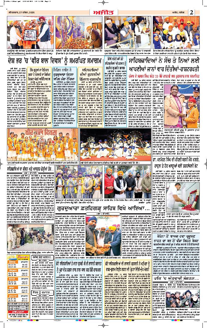 ਨਵੀਂ ਦਿੱਲੀ , 26 ਦਸੰਬਰ - ਦਿੱਲੀ ਦੇ ਵਾਤਾਵਰਨ ਮੰਤਰੀ ਮਨਜਿੰਦਰ ਸਿੰਘ ਸਿਰਸਾ ਨੇ ਕਿਹਾ, "2022 ਵਿਚ, ਪ੍ਰਧਾਨ ਮੰਤਰੀ ਮੋਦੀ ਨੇ 'ਵੀਰ ਬਾਲ ਦਿਵਸ' ਦਾ ਐਲਾਨ ਕੀਤਾ ਅਤੇ ਇਸ ਨੂੰ ਬਾਬਾ ਜ਼ੋਰਾਵਰ ਸਿੰਘ ਜੀ ...