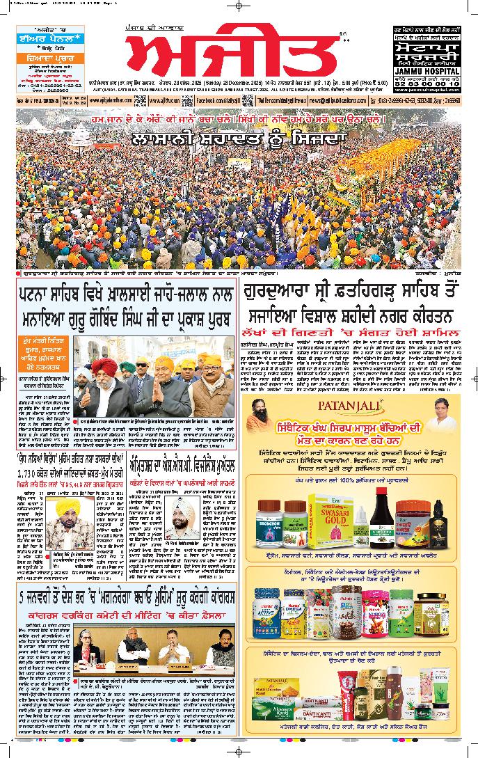 ਅਜੀਤ' ਖ਼ਬਰਾਂ, 27 ਦਸੰਬਰ 2025