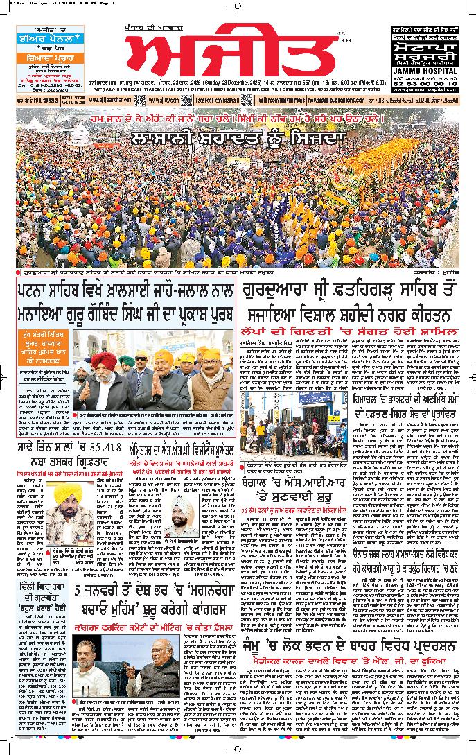 ਅਜੀਤ' ਖ਼ਬਰਾਂ, 27 ਦਸੰਬਰ 2025