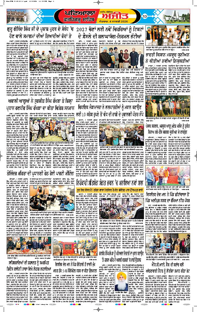 ਅੰਮ੍ਰਿਤਸਰ, 8 ਜਨਵਰੀ (ਜਸਵੰਤ ਸਿੰਘ ਜੱਸ)- ਅੱਜ ਇੱਥੇ ਪੰਥਕ ਆਗੂਆਂ ਭਾਈ ਮੋਹਕਮ ਸਿੰਘ , ਮਨਜੀਤ ਸਿੰਘ ਭੋਮਾ , ਸਤਨਾਮ ਸਿੰਘ ਮਨਾਵਾਂ , ਭਾਈ ਮੇਜਰ ਸਿੰਘ ਸਾਬਕਾ ਪੰਜ ਪਿਆਰੇ ਸ੍ਰੀ ਅਕਾਲ ਤਖ਼ਤ ਸਾਹਿਬ ਅਤੇ ਭਾਈ ਕੁਲਵਿੰਦਰ ਸਿੰਘ ਅਰਦਾਸੀਆਂ ਨੇ...