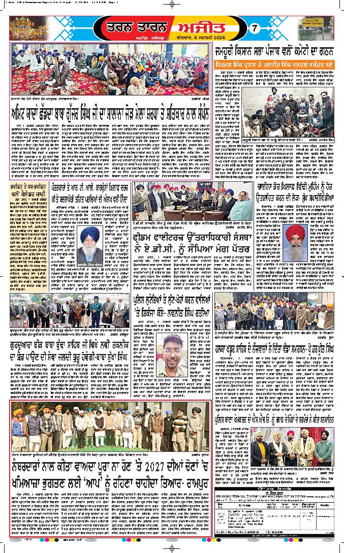 ਜੰਡਿਆਲਾ ਗੁਰੂ, 10 ਜਨਵਰੀ (ਪ੍ਰਮਿੰਦਰ ਸਿੰਘ ਜੋਸਨ)- ਸ਼੍ਰੋਮਣੀ ਅਕਾਲੀ ਦਲ ਪੁਨਰ-ਸੁਰਜੀਤ ਦੇ ਪ੍ਰਧਾਨ ਗਿਆਨੀ ਹਰਪ੍ਰੀਤ ਸਿੰਘ ਨੇ ਕਿਹਾ ਕਿ ਅੱਜ ਪੰਜਾਬ ਅਤੇ ਪੰਥ ਇਕ ਅਜਿਹੇ ਮੋੜ ’ਤੇ ਖੜ੍ਹੇ ਹਨ...