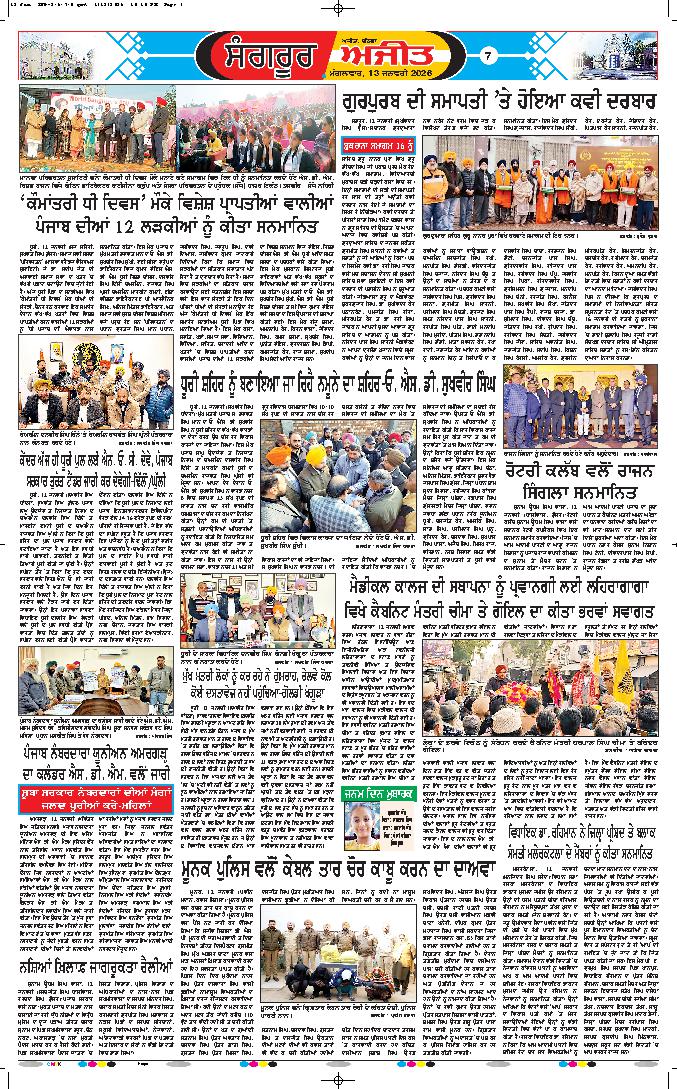 ਨਵੀਂ ਦਿੱਲੀ, 12 ਜਨਵਰੀ (ਏਐਨਆਈ): ਸੂਤਰਾਂ ਨੇ ਦੱਸਿਆ ਕਿ ਅਦਾਕਾਰ ਅਤੇ ਟੀ.ਵੀ.ਕੇ. ਮੁਖੀ ਵਿਜੇ ਤੋਂ ਕਰੂਰ ਭਗਦੜ ਮਾਮਲੇ ਦੇ ਸੰਬੰਧ ਵਿਚ ਸੀ.ਬੀ.ਆਈ. ਹੈੱਡਕੁਆਰਟਰ ਵਿਚ ਲਗਭਗ 7 ਘੰਟੇ ...