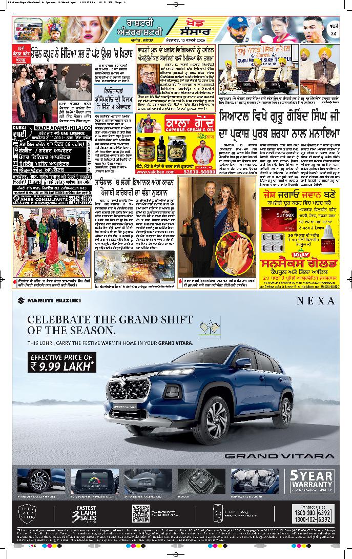 ਨਵੀਂ ਦਿੱਲੀ, 12 ਜਨਵਰੀ (ਏਐਨਆਈ): ਸੂਤਰਾਂ ਨੇ ਦੱਸਿਆ ਕਿ ਅਦਾਕਾਰ ਅਤੇ ਟੀ.ਵੀ.ਕੇ. ਮੁਖੀ ਵਿਜੇ ਤੋਂ ਕਰੂਰ ਭਗਦੜ ਮਾਮਲੇ ਦੇ ਸੰਬੰਧ ਵਿਚ ਸੀ.ਬੀ.ਆਈ. ਹੈੱਡਕੁਆਰਟਰ ਵਿਚ ਲਗਭਗ 7 ਘੰਟੇ ...