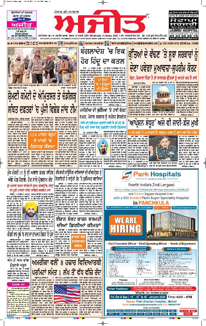 ਅਜੀਤ' ਖ਼ਬਰਾਂ, 13 ਜਨਵਰੀ 2025