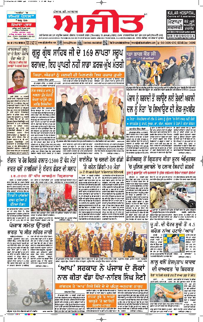 ਅਜੀਤ' ਖ਼ਬਰਾਂ, 14 ਜਨਵਰੀ 2025