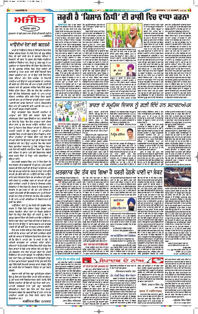 ਸੁਲਤਾਨਪੁਰ ਲੋਧੀ,15 ਜਨਵਰੀ (ਥਿੰਦ) - ਨੈਸ਼ਨਲ ਹਾਈਵੇ ਅਥਾਰਟੀ ਵਲੋਂ ਹਲਕਾ ਸੁਲਤਾਨਪੁਰ ਲੋਧੀ ਅੰਦਰ ਕਿਸਾਨਾਂ ਦੀਆਂ ਸੈਂਕੜੇ ਏਕੜ ਜ਼ਮੀਨਾਂ ਐਕਸਪ੍ਰੈਸ ਵੇਅ ਲਈ ਐਕਵਾਇਰ ਕਰਕੇ ਉਨ੍ਹਾਂ ਨੂੰ ਯੋਗ ...
