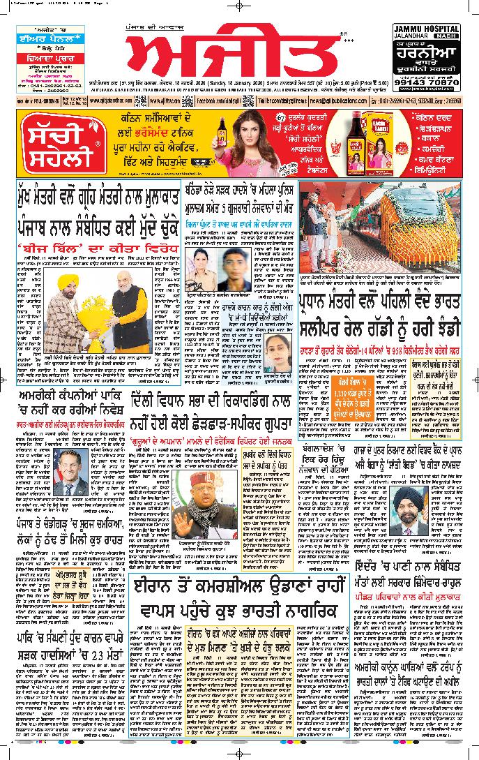 ਅਜੀਤ' ਖ਼ਬਰਾਂ, 17 ਜਨਵਰੀ 2025