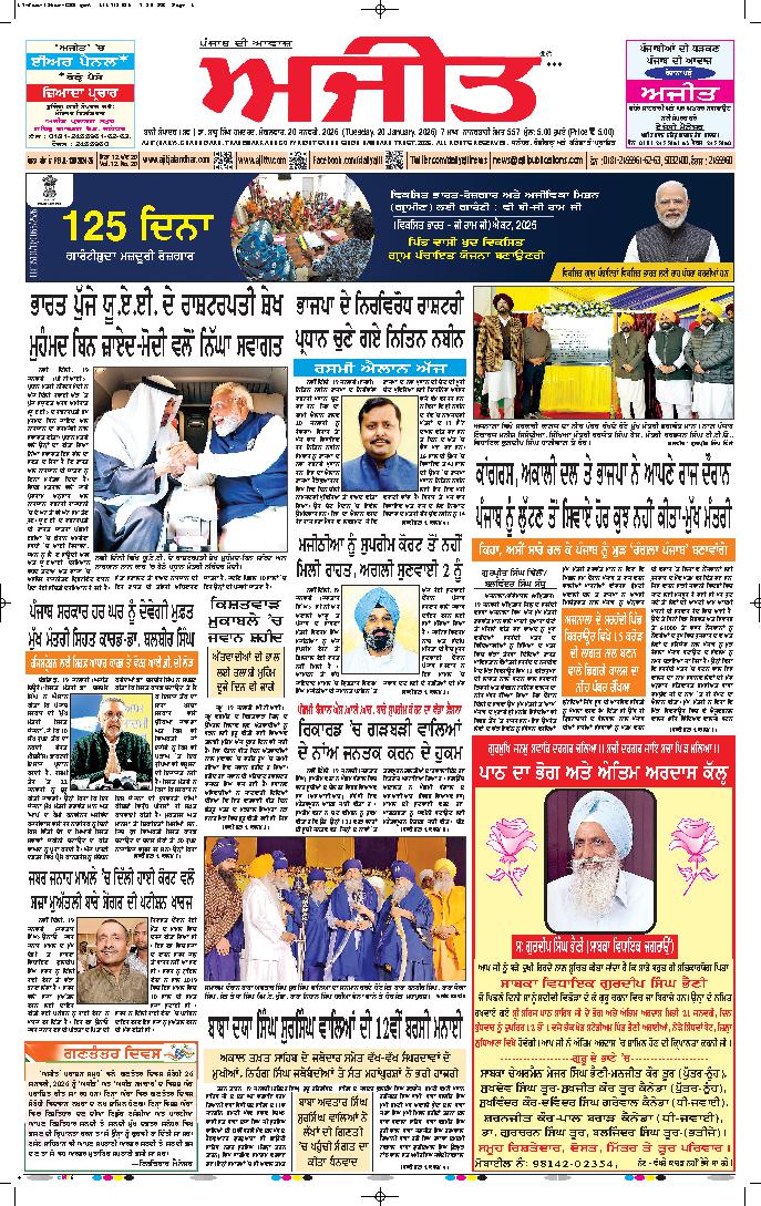 ਅਜੀਤ' ਖ਼ਬਰਾਂ, 19 ਜਨਵਰੀ 2025