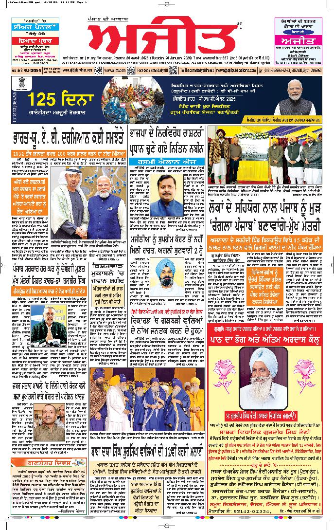 ਅਜੀਤ' ਖ਼ਬਰਾਂ, 19 ਜਨਵਰੀ 2025