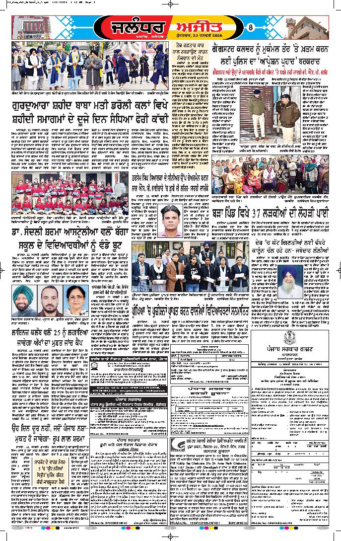 ਚੰਡੀਗੜ੍ਹ, 22 ਜਨਵਰੀ: ਗਣਤੰਤਰ ਦਿਵਸ ਪਰੇਡ- 2026 ਲਈ ਪੰਜਾਬ ਸਰਕਾਰ ਦੁਆਰਾ ਤਿਆਰ ਕੀਤੀ ਗਈ ਝਾਕੀ ਮਨੁੱਖੀ ਏਕਤਾ, ਦਇਆ-ਭਾਵਨਾ ਅਤੇ ਧਾਰਮਿਕ ਕਦਰਾਂ-ਕੀਮਤਾਂ ਦੇ ਉੱਚਤਮ ਆਦਰਸ਼ਾਂ ਨੂੰ...