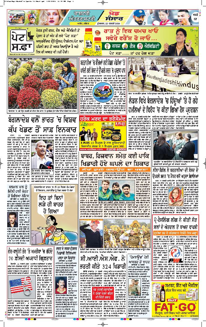 ਨਵੀਂ ਦਿੱਲੀ, 22 ਜਨਵਰੀ (ਏਐਨਆਈ): ਸਾਬਕਾ ਭਾਰਤੀ ਕ੍ਰਿਕਟਰ ਅਤੁਲ ਵਾਸਨ ਨੇ ਬੰਗਲਾਦੇਸ਼ ਕ੍ਰਿਕਟ ਬੋਰਡ (ਬੀ.ਸੀ.ਬੀ.) ਦੇ ਆਉਣ ਵਾਲੇ ਟੀ-20 ਵਿਸ਼ਵ ਕੱਪ 2026 ਲਈ ਭਾਰਤ ਦਾ ਦੌਰਾ ਨਾ ...