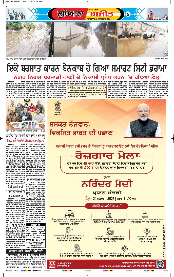ਨਵੀਂ ਦਿੱਲੀ, 24 ਜਨਵਰੀ- ਪ੍ਰਧਾਨ ਮੰਤਰੀ ਨਰਿੰਦਰ ਮੋਦੀ ਨੇ ਅੱਜ 18ਵੇਂ ਵਰਚੁਅਲ ਰੁਜ਼ਗਾਰ ਮੇਲੇ ਵਿਚ ਨੌਜਵਾਨਾਂ ਨੂੰ 61,000 ਨੌਕਰੀ ਪੱਤਰ ਵੰਡੇ। ਇਹ ਨਿਯੁਕਤੀਆਂ ਗ੍ਰਹਿ ਮੰਤਰਾਲੇ...