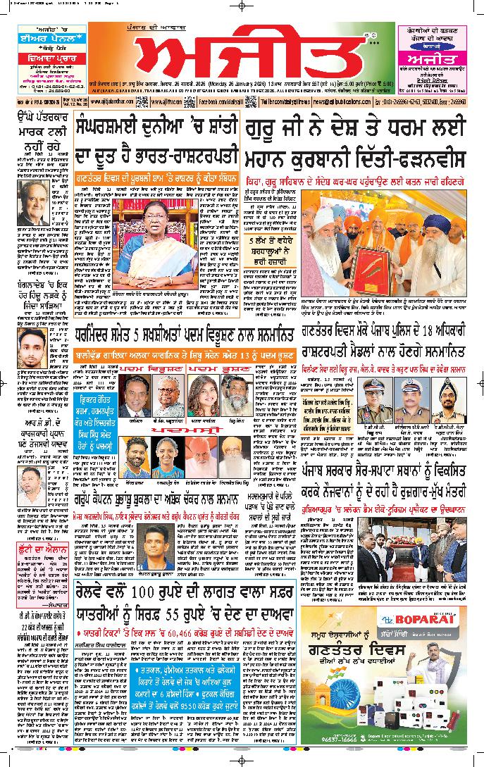 ਅਜੀਤ' ਖ਼ਬਰਾਂ, 25 ਜਨਵਰੀ 2025
