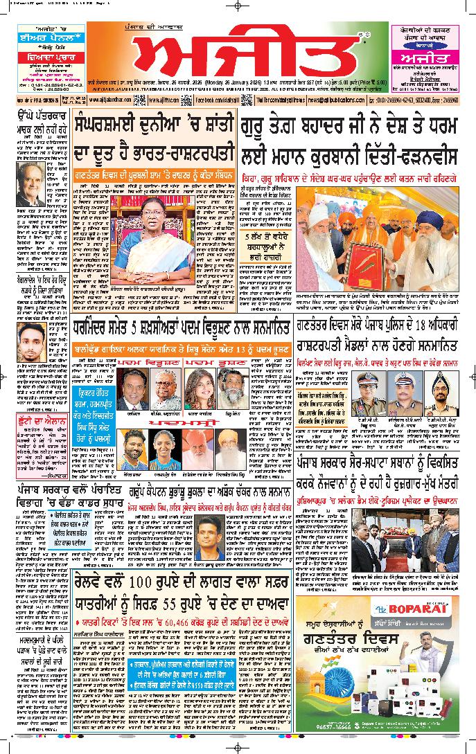 ਅਜੀਤ' ਖ਼ਬਰਾਂ, 25 ਜਨਵਰੀ 2025