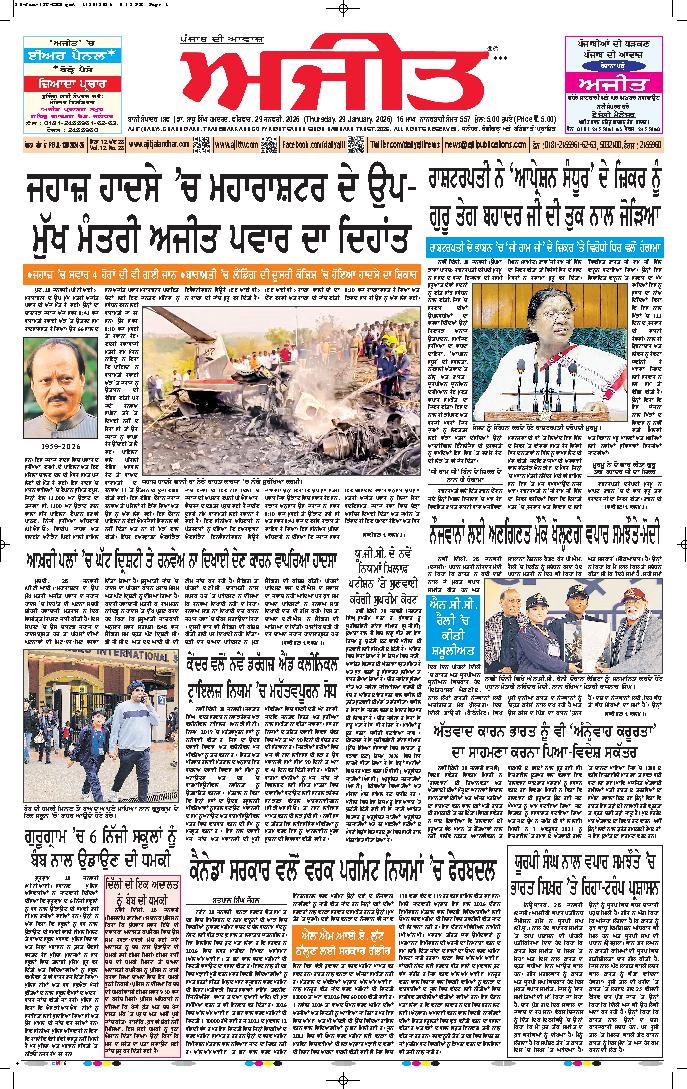 ਅਜੀਤ' ਖ਼ਬਰਾਂ, 28 ਜਨਵਰੀ 2026