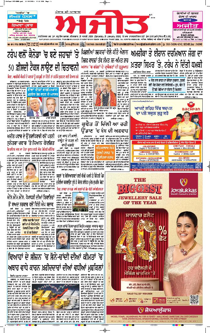 ਅਜੀਤ' ਖ਼ਬਰਾਂ, 30 ਜਨਵਰੀ 2026