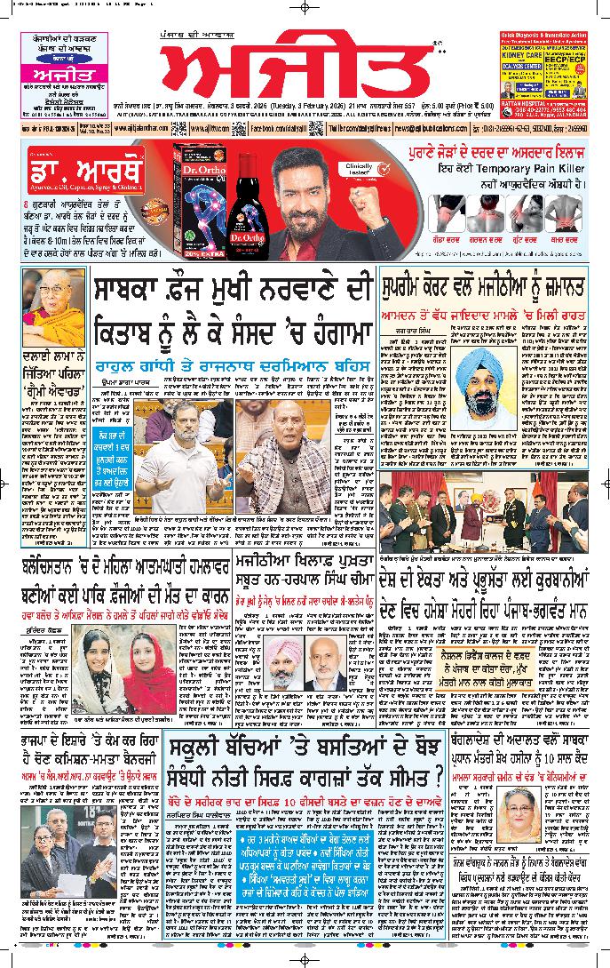 ਅਜੀਤ' ਖ਼ਬਰਾਂ, 2 ਫਰਵਰੀ 2026