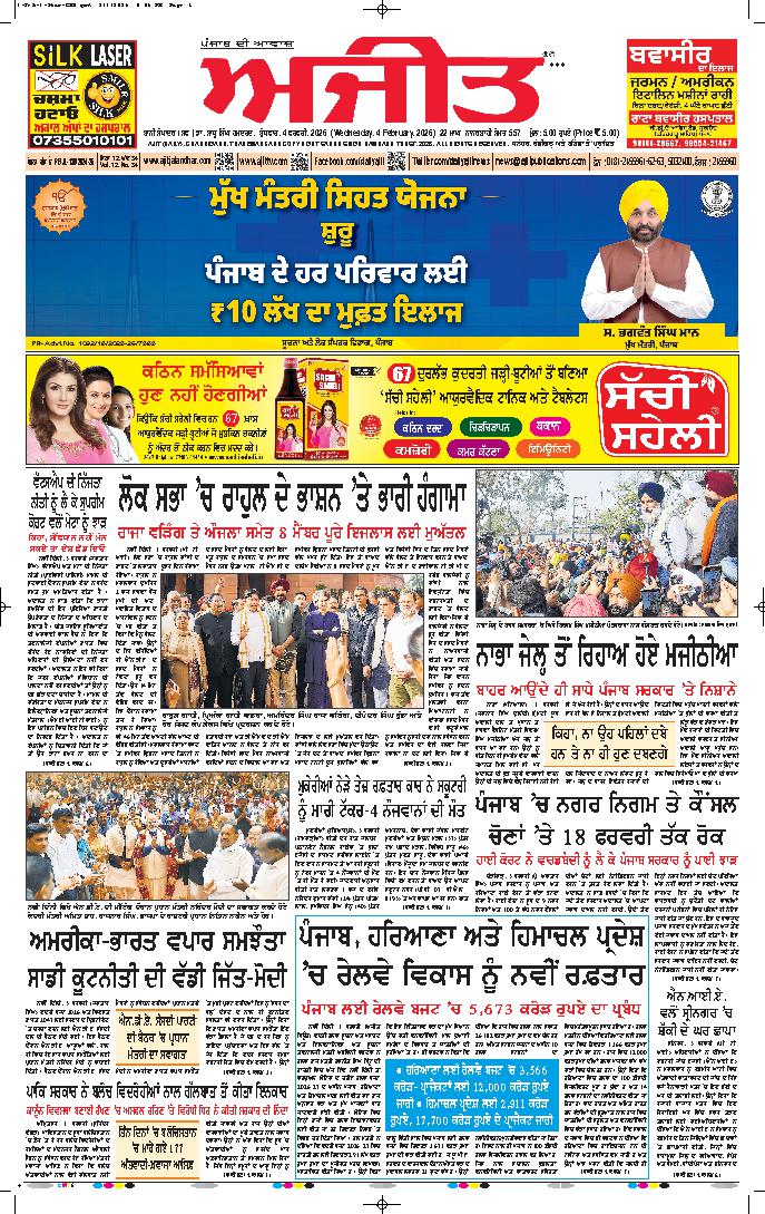 ਅਜੀਤ' ਖ਼ਬਰਾਂ, 3 ਫਰਵਰੀ 2026