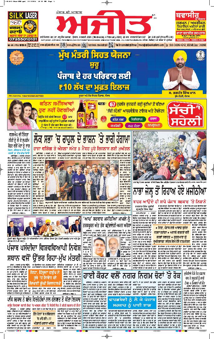 ਅਜੀਤ' ਖ਼ਬਰਾਂ, 3 ਫਰਵਰੀ 2026