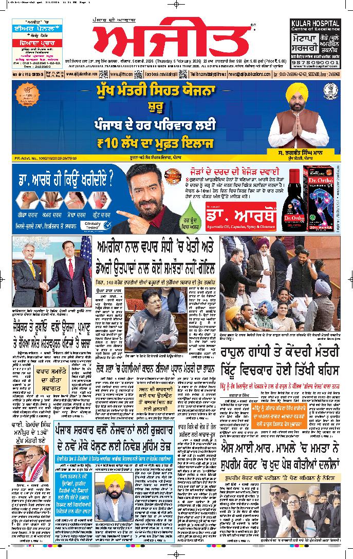 ਅਜੀਤ' ਖ਼ਬਰਾਂ, 4 ਫਰਵਰੀ 2026