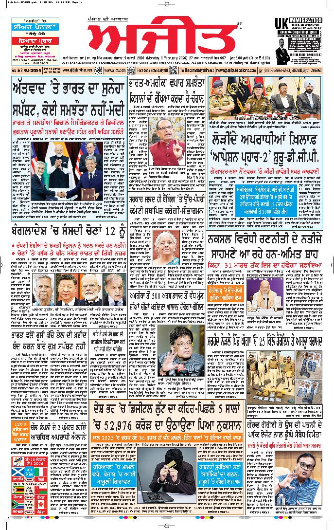 ਅਜੀਤ' ਖ਼ਬਰਾਂ, 8 ਫਰਵਰੀ 2026