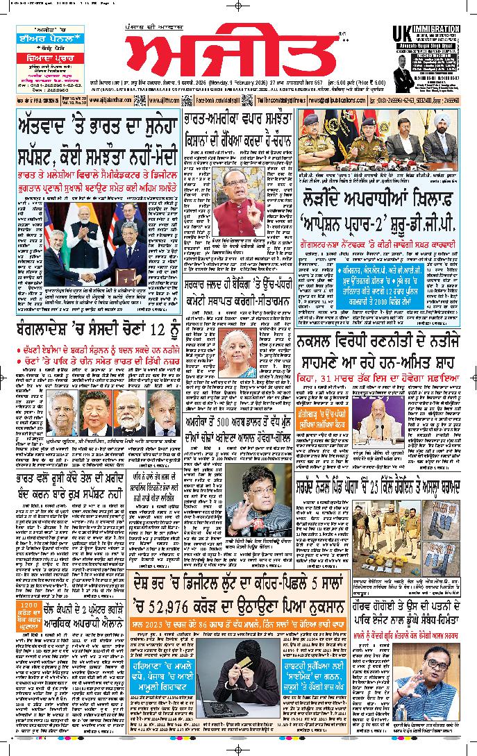 ਅਜੀਤ' ਖ਼ਬਰਾਂ, 8 ਫਰਵਰੀ 2026