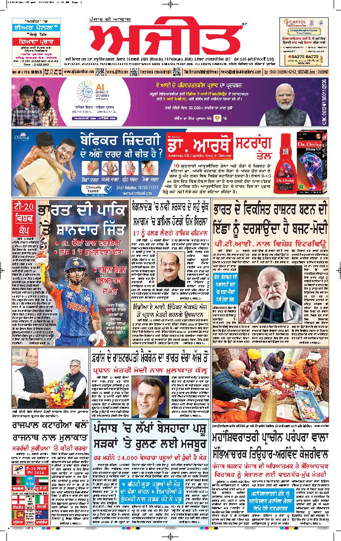 ਅਜੀਤ' ਖ਼ਬਰਾਂ, 15 ਫਰਵਰੀ 2026