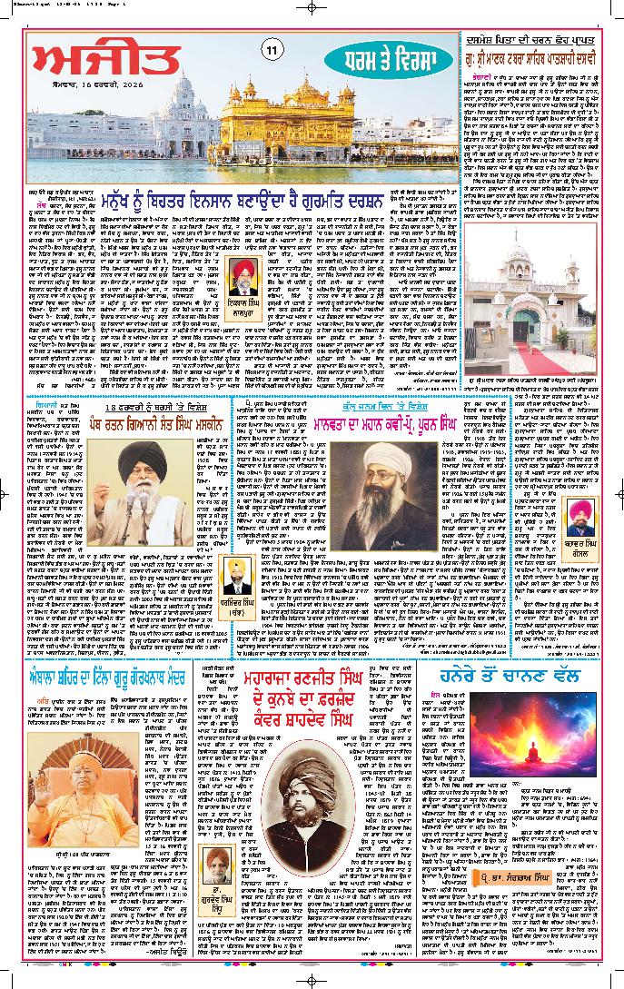 ਅਜੀਤ' ਖ਼ਬਰਾਂ, 15 ਫਰਵਰੀ 2026