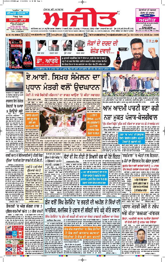 ਅਜੀਤ' ਖ਼ਬਰਾਂ, 16 ਫਰਵਰੀ 2026